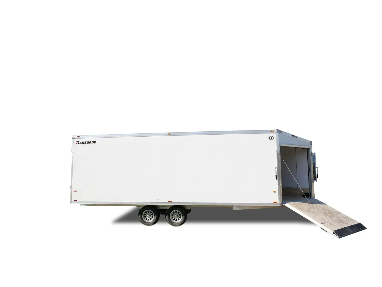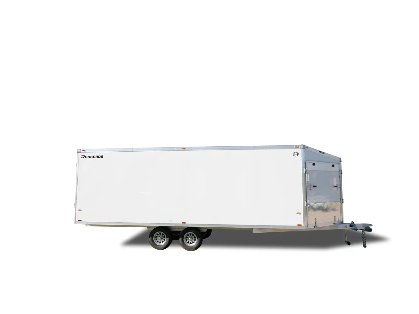 If 7 feet wide does not cut it for you then explore the Rance 8.5' Wide Enclosed Snow Trailer. They offer more room to store your payload and the wider front and rear ramp doors make it easier to enter and exit the trailer. The Renegade Model includes a 5-year warranty, aluminum rims, engineered flooring, stainless steel hinges, and a deluxe side door.